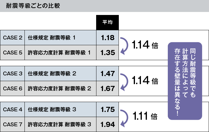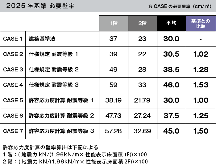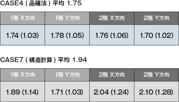 ※CASE5,6,7(許容応力度計算)は、壁量基準の変更はないため、以前のシミュレーション結果に基づく。